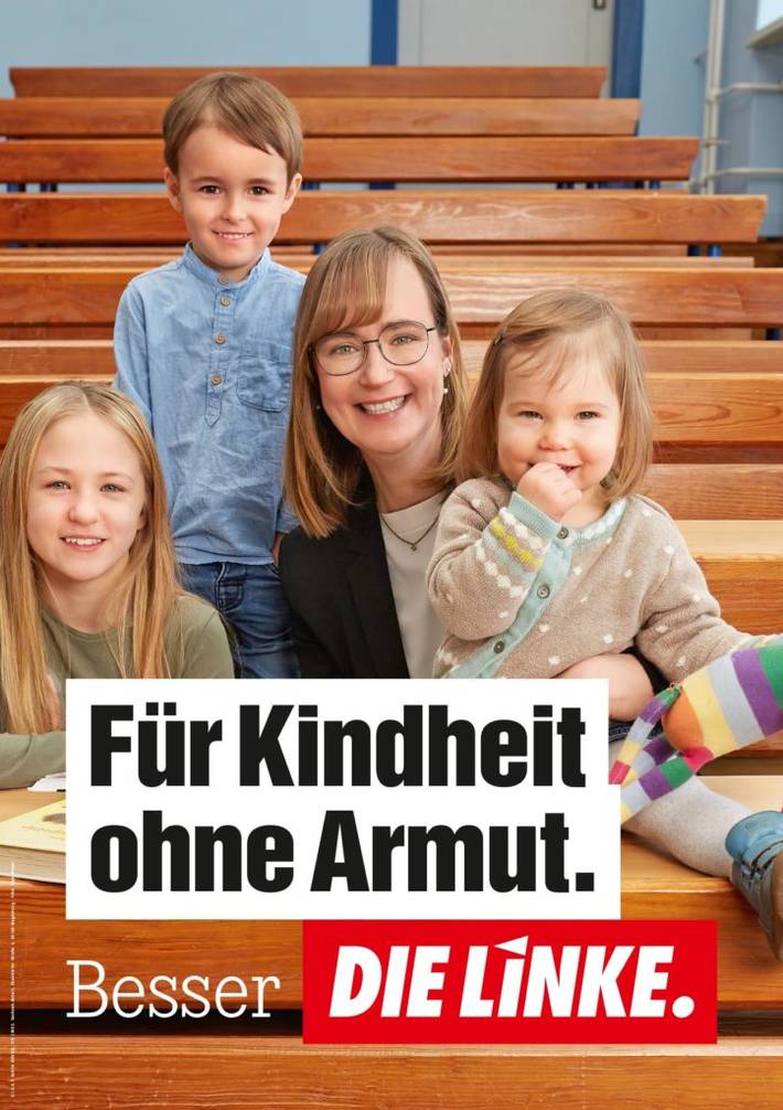 „Solidarität statt Ellenbogen“, so lautet das Leitwort von Die Linke im Landeswahlkampf 2021 in Sachsen-Anhalt. Ihre Spitzenkandidatin: Anwältin Eva von Angern. Die 44-jährige Magdeburgerin wurde Anfang des Jahres, mit 85,6 Prozent der Stimmen, gewählt. Ihr Versprechen: „Ich werde zukunftsfähige Politik für unser Land machen.“ Im Fokus des Programms steht vor allem die Bekämpfung der Kinderarmut, wie ein Plakat mit von Angern deutlich macht: „Für Kindheit ohne Armut“.
