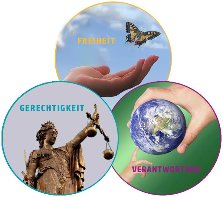 Ziel: kulturelle & geistige Freiheit, wirtschaftliche & ökologische Verantwortung, politische & soziale Gerechtigkeit
