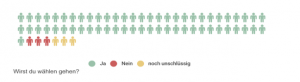 65 Personen haben die Umfrage beantwortet. 59 Teilnehmer*innen werden sicher wählen gehen, 3 auf gar keinen Fall.